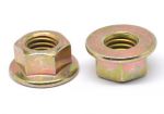 1/4" - 28 Flange Nuts - 7/16" Head - pack of 10 - uses a 7/16" socket - smooth back (fits: sprocket hub, wheel hubs) (regular price $3.50) |